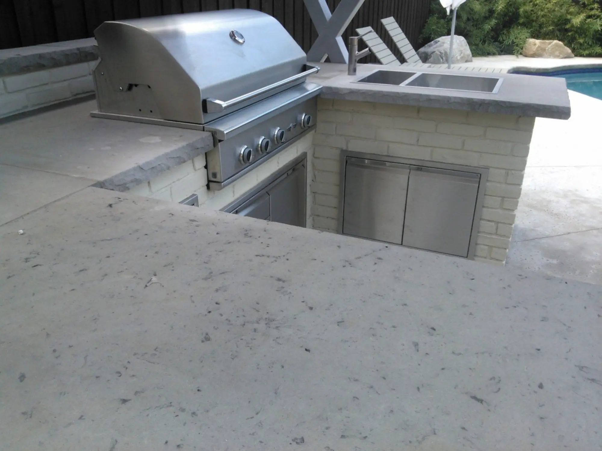 Everyone loves a pool…But the surrounding landscape and entertaining areas can either make or brake the space. Making the poolside environment both functional and attractive not only boosts your property value, but inspires you to actually use the pool! By adding a modern outdoor kitchen, installing all new concrete around the pool, and refreshing the landscape, we took this backyard from “OK” to “amazing”. The old concrete around the pool was old and unattractive. We removed it and installed all new concrete, creating the perfect space for new patio furniture. We designed and installed a new outdoor kitchen using sleek modern materials. We made sure to keep the size of the new kitchen to the scale for this small backyard, so it didn’t overwhelm the space by adding only the necessities; a sink, counter space to prep, a grill and oven. While the live landscaping around the pool is minimal, it strategically creates a soft frame that contrasts with the hardscape. Easy-maintenance, water-wise plants were chosen to fit this family’s lifestyle. The finished landscape is a space the entire family can enjoy together.